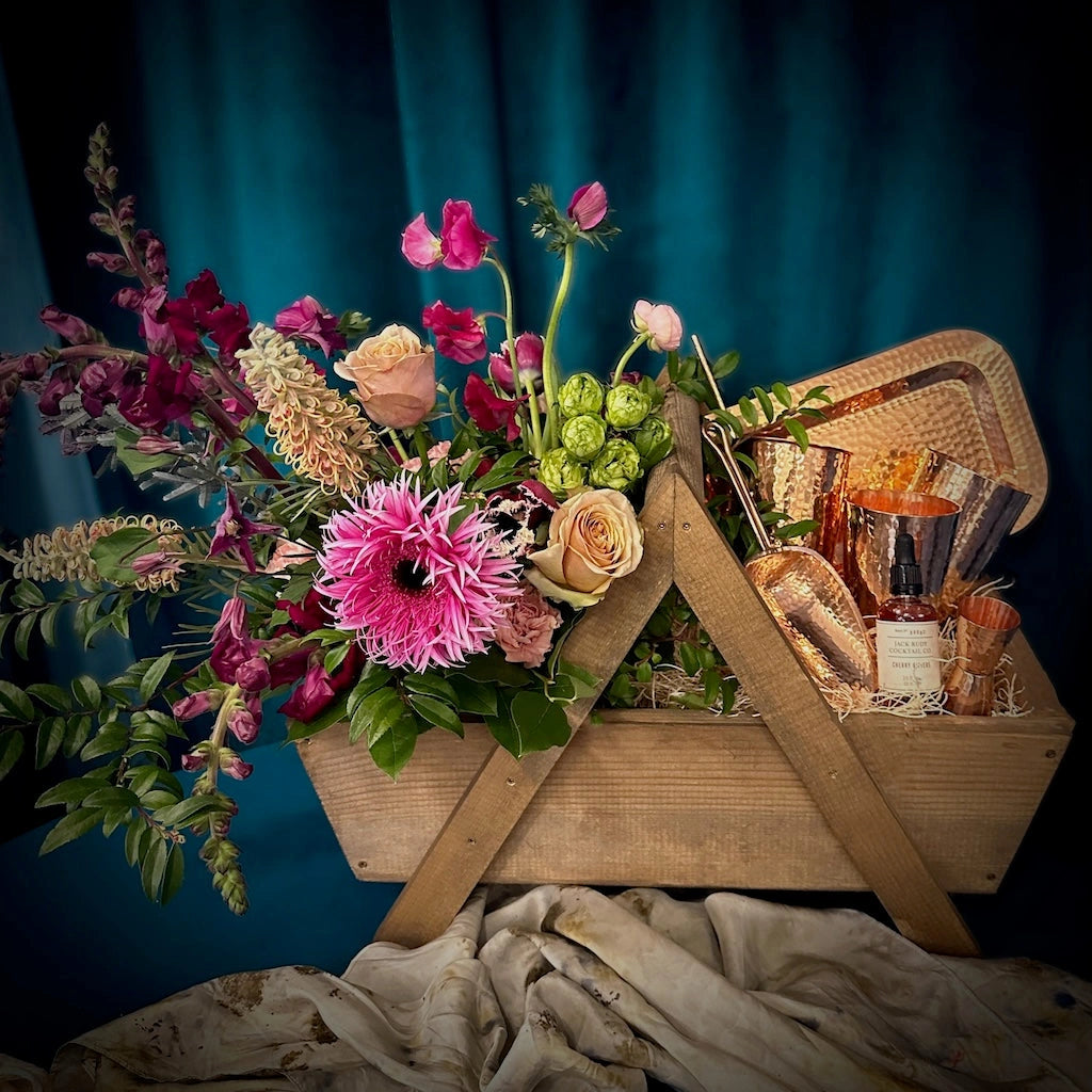 Indulge in the Ultimate Luxury: Flowers and Wine Gift Basket Delivery for Every Occasion Elevate your gifting game with the perfect combination of elegance and indulgence. Imagine the look of delight on your loved one's face as they receive a luxurious gift basket filled with vibrant, fresh flowers and exquisite wine or cocktail making supplies. Whether it's a birthday celebration, anniversary, or a simple gesture to show appreciation, a flowers and wine gift basket is the ultimate way to make a lasting impression. At Campanula Design Studio, we understand the art of curating the perfect gift. Our meticulously crafted gift baskets are designed to cater to every occasion, ensuring that each recipient receives a truly personalized experience. Immerse yourself in a world of breathtaking floral arrangements and hand-selected wines or barware and cocktail supplies that are sure to tantalize the senses. Indulge in the finest selection of seasonal local flowers expertly arranged to capture the essence of elegance and beauty. Coupled with a carefully chosen bottle of wine, our gift baskets create an unforgettable sensory experience, bringing joy and celebration to every moment. Experience the epitome of luxury and convenience with our flower and wine gift basket delivery service. Let us help you create unforgettable memories, one gift basket at a time.