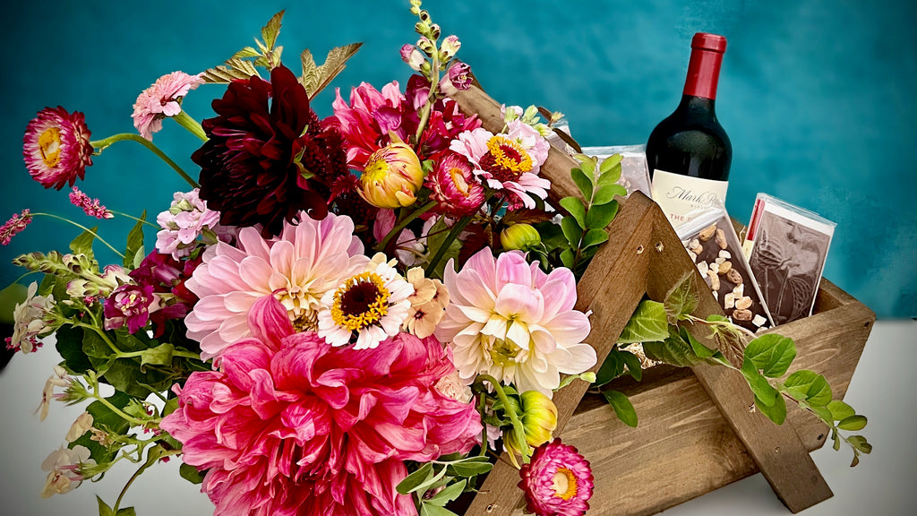 Custom curated gift baskets featuring flowers, wine, and artisan goods. Local delivery in the Seattle area.