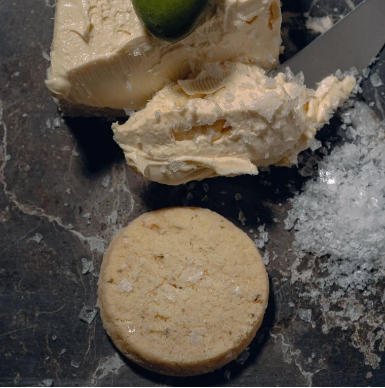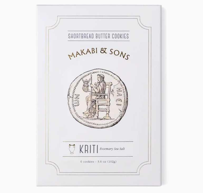 Shortbread butter cookies with aromatic rosemary and Maldon sea salt. A mingling of the ancient land and sea of Greece. Cobblestoned paths lead to blue seas. Follow the scent of sea salt to find the lasting memory of rosemary’s lemon-pine punch. A handheld sweet escape.