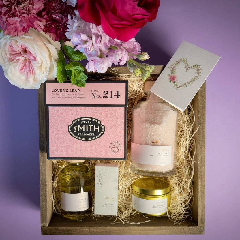 Send your love this Valentine's Day with one of our custom designed gift boxes. Designed in one of our wooden boxes with a lid, the box will be tied off with ribbon for a beautiful gift presentation. Box includes:
