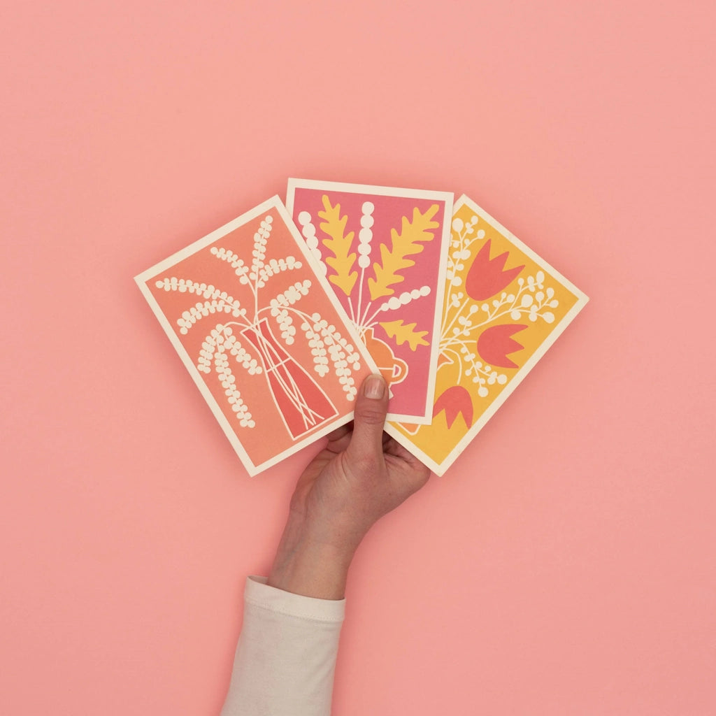 - Blank cards suitable to give for many an occasion. - 8 different designs available. - Printed on a tactile, thick board in soft white. - Sealed using card clasp sticker Size - A6 Material - 300gsm sustainably sourced card in soft white - Recycled Kraft envelope Process - Digitally printed Packaging - Card clasp sticker Origin - Printed and finished in England.