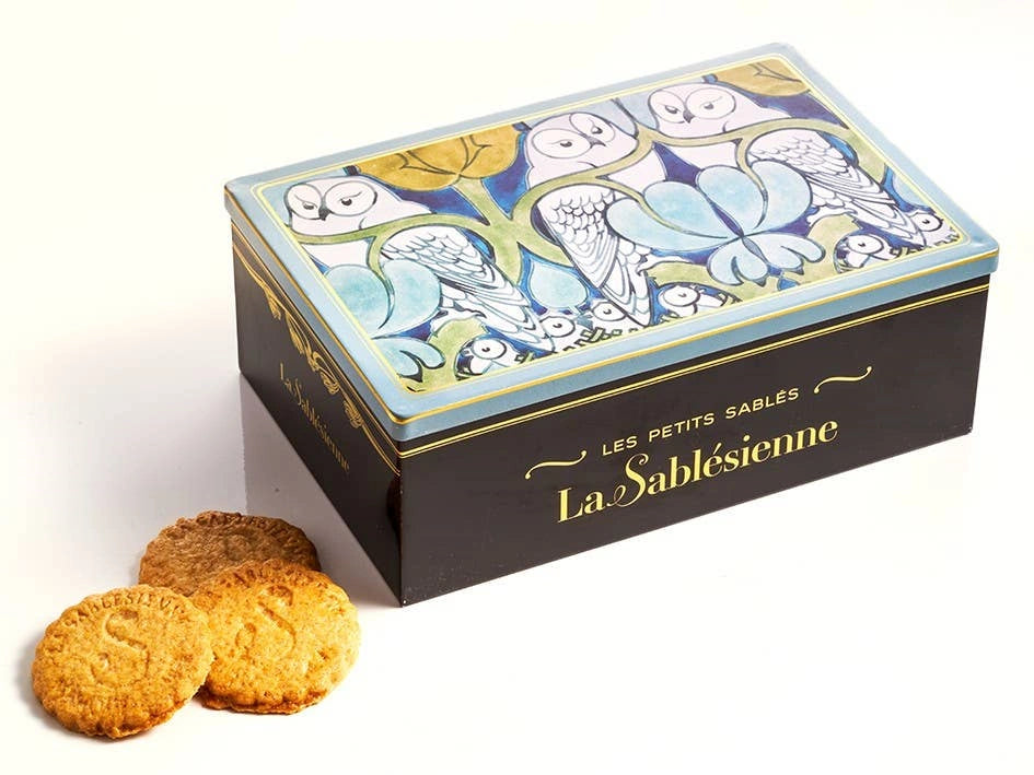 "Chouettes de Voysey" Raspberry Shortbread Box by La Sablesienne
