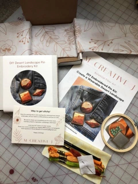 Explore the lines of the desert with this DIY embroidered pin kit.