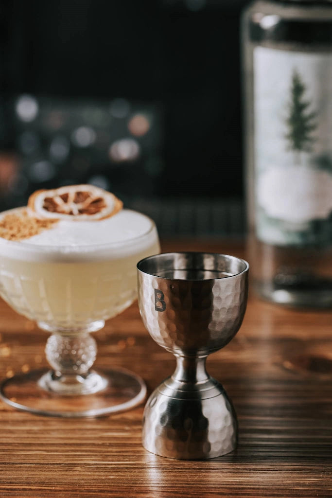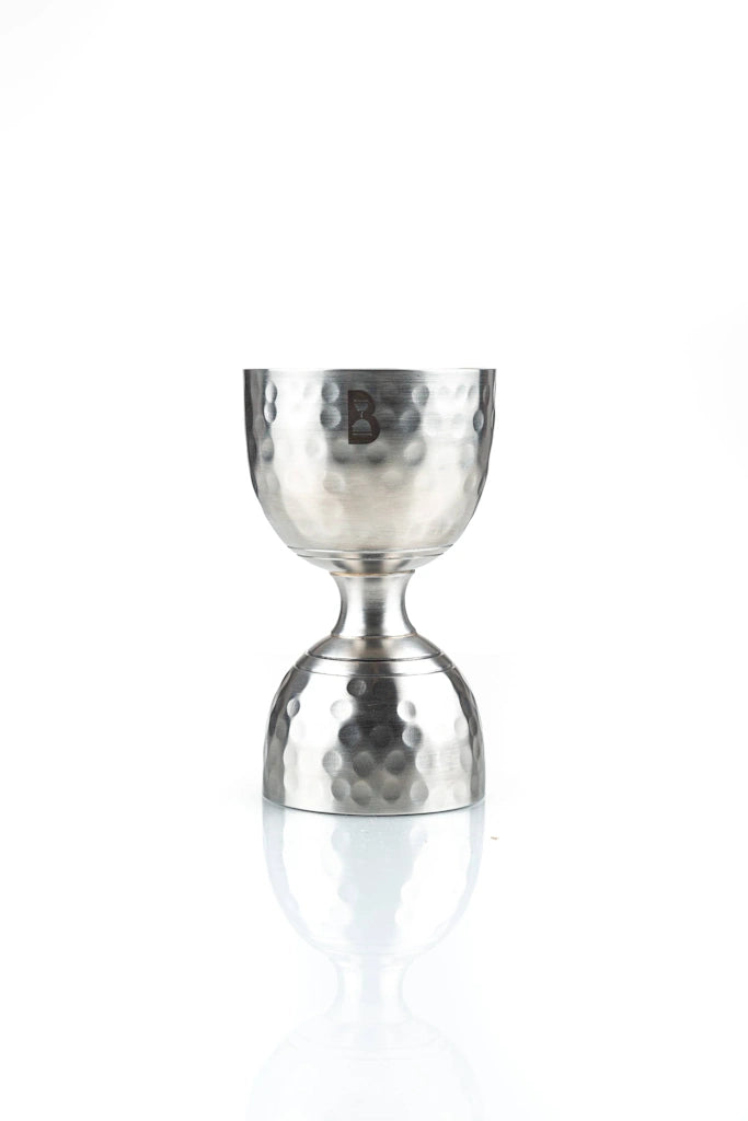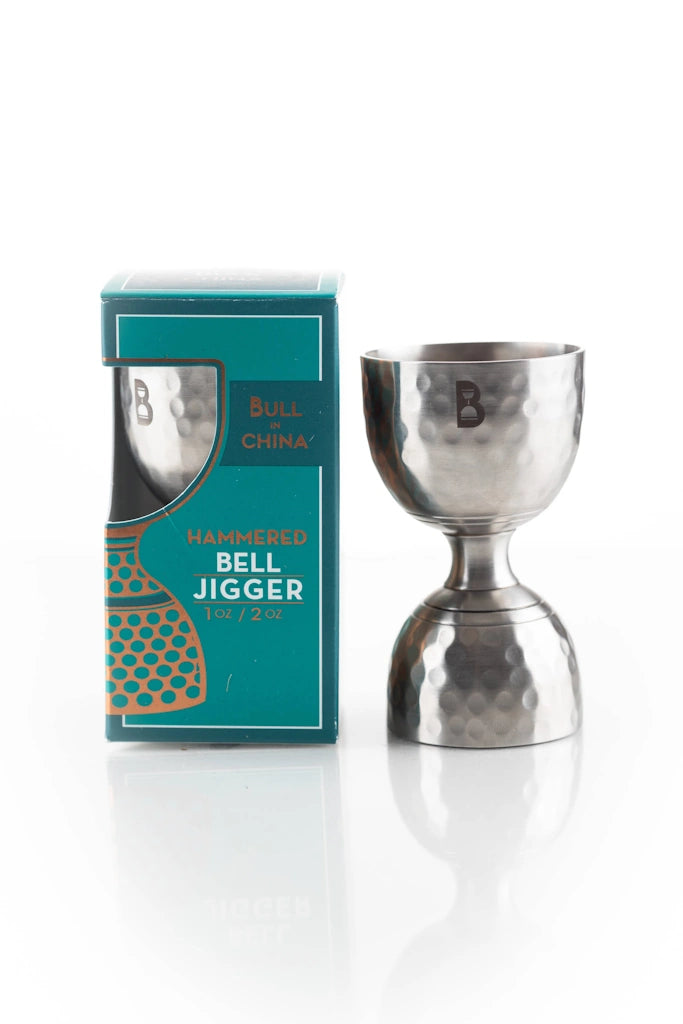 This new piece is inspired by the Bull in China Flagship Mixing Glass. With its own hammered exterior, to emulate the look and feel of their mixing glass, these jiggers are truly one of a kind. Larger side is 2 oz (with internal marking at 1.5oz) and the smaller side is 1 oz with internal markings at .25, .5, and .75oz