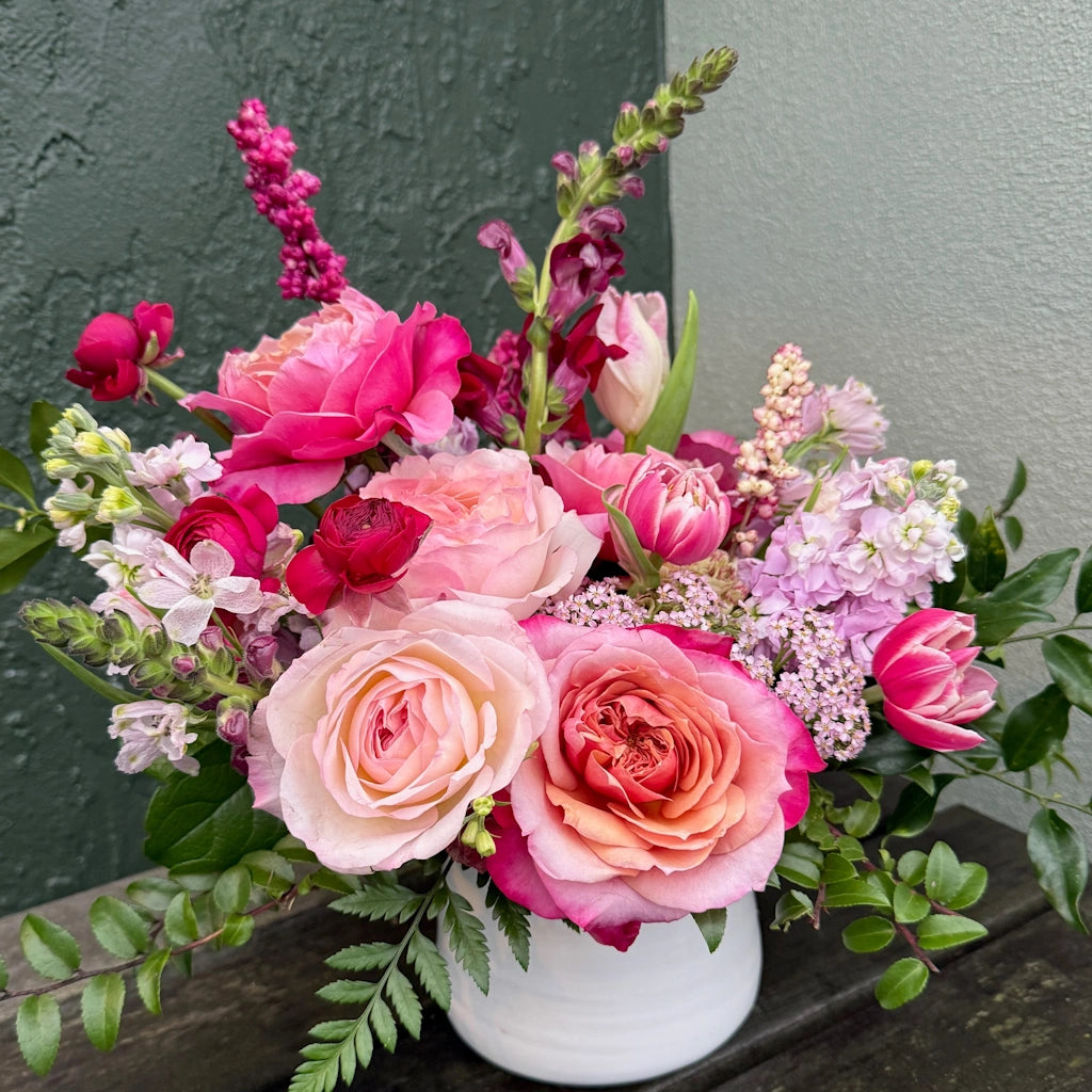 Love Actually is our not-so-subtle ode to romance in full bloom. Designed in a lush palette of blush, hot pinks, soft reds, and creamy neutrals, this design layers garden-inspired florals with delicate textures for a look that feels effortless, abundant, and deeply romantic.