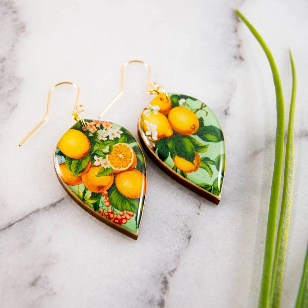 Orange Grove Vintage Large Leaf Earrings