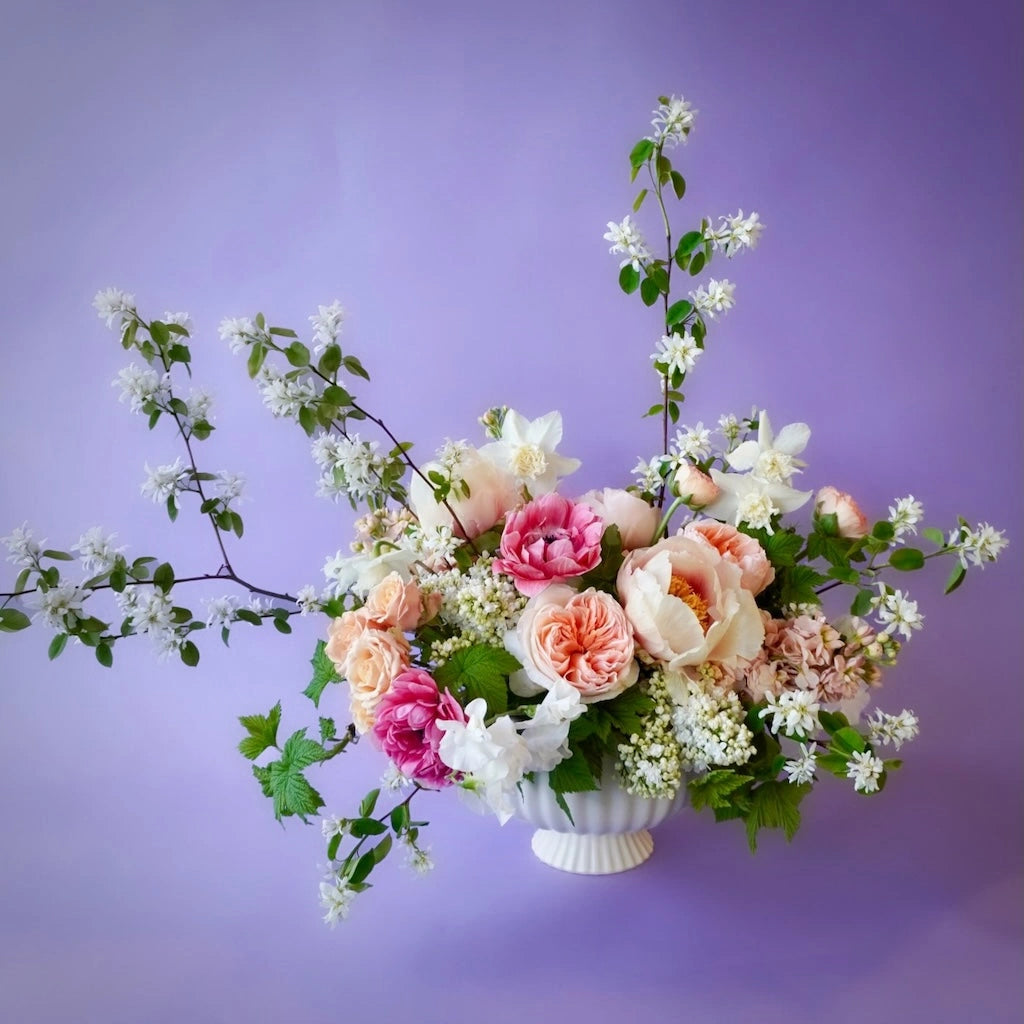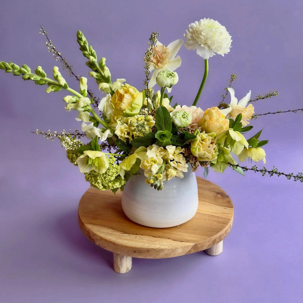 Seasonally inspired vase arrangement designed in our choice of vase unless clear glass is specified. Flowers will be selected from the best available blooms - exclusively locally grown and salmon safe whenever possible.