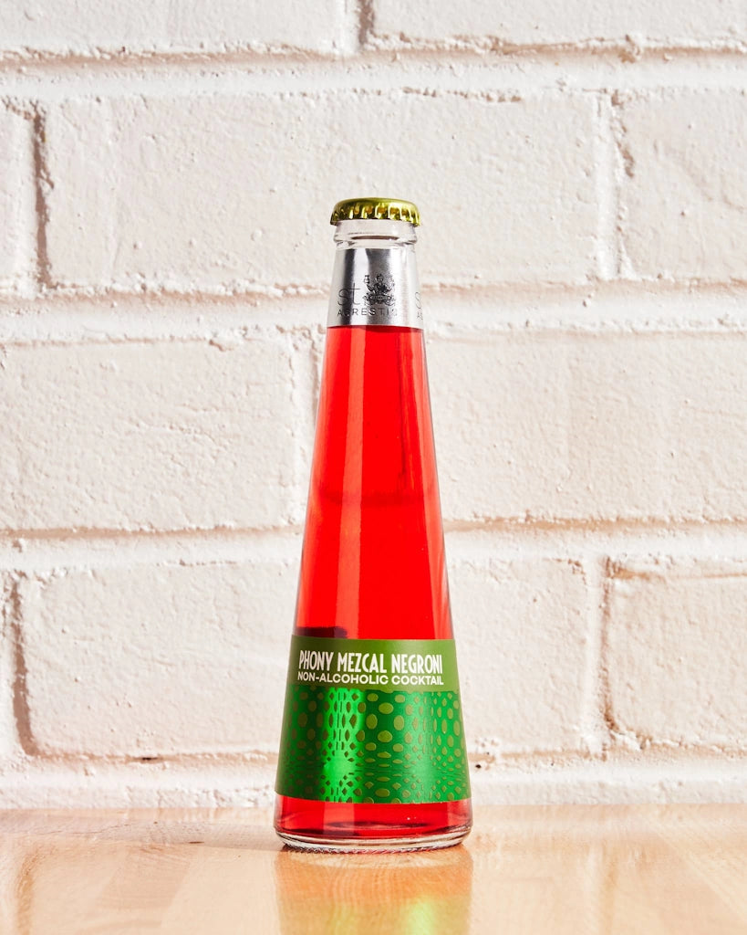 Introducing the Non-Alcoholic Phony Mezcal Negroni! Made with many of the same botanicals found in the beloved favorite, Phony Mezcal Negroni emphasizes mezcal qualities by offering nuanced notes of smoke, vegetal complexity and earthiness to compliment its bitter foundation. Gentle carbonation is added to help mimic the bite and mouth feel that alcohol typically provides. Enjoy chilled straight from the bottle or over ice with an orange twist.