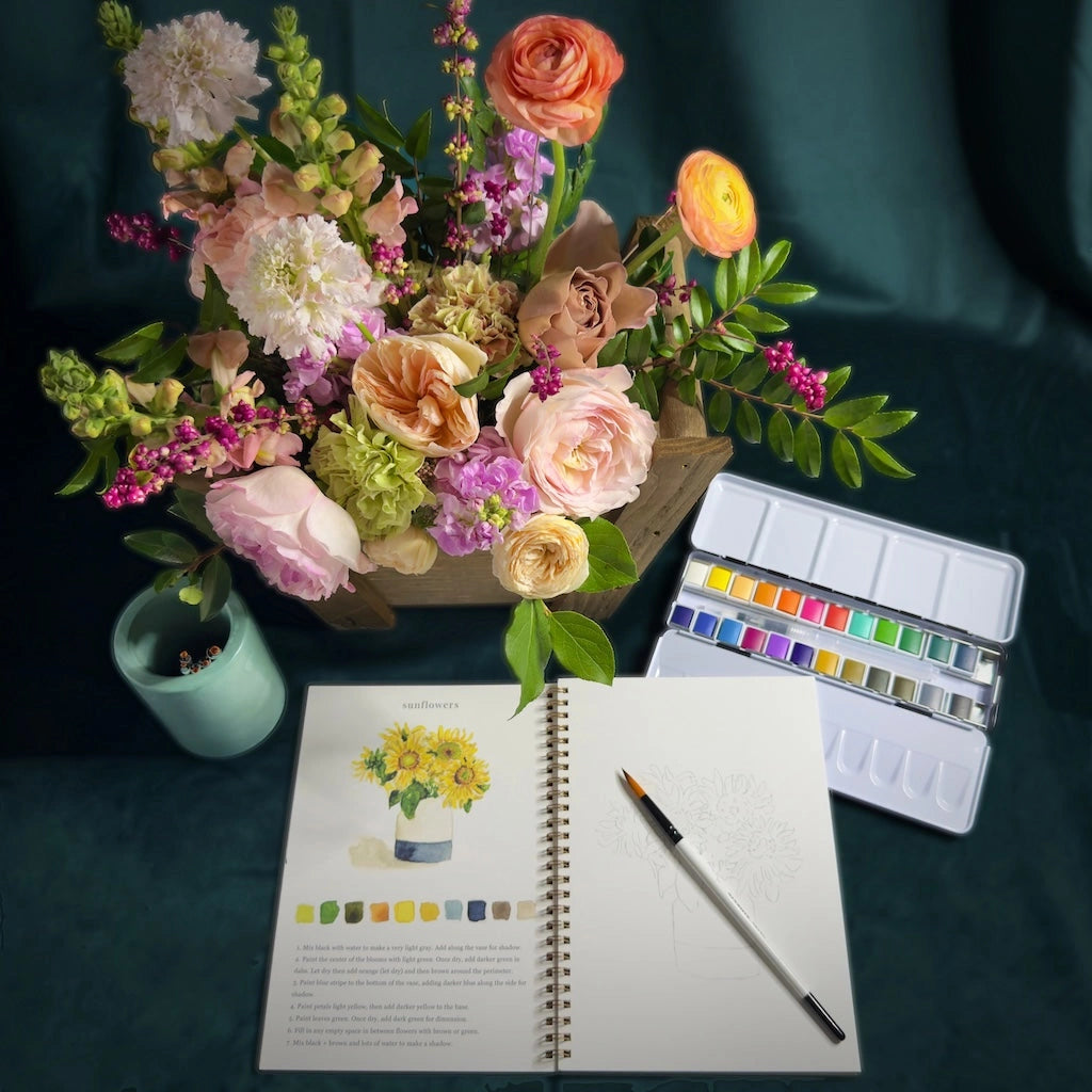 - A watercolor book with directions by Emily Lex Studio in your choice of designs
