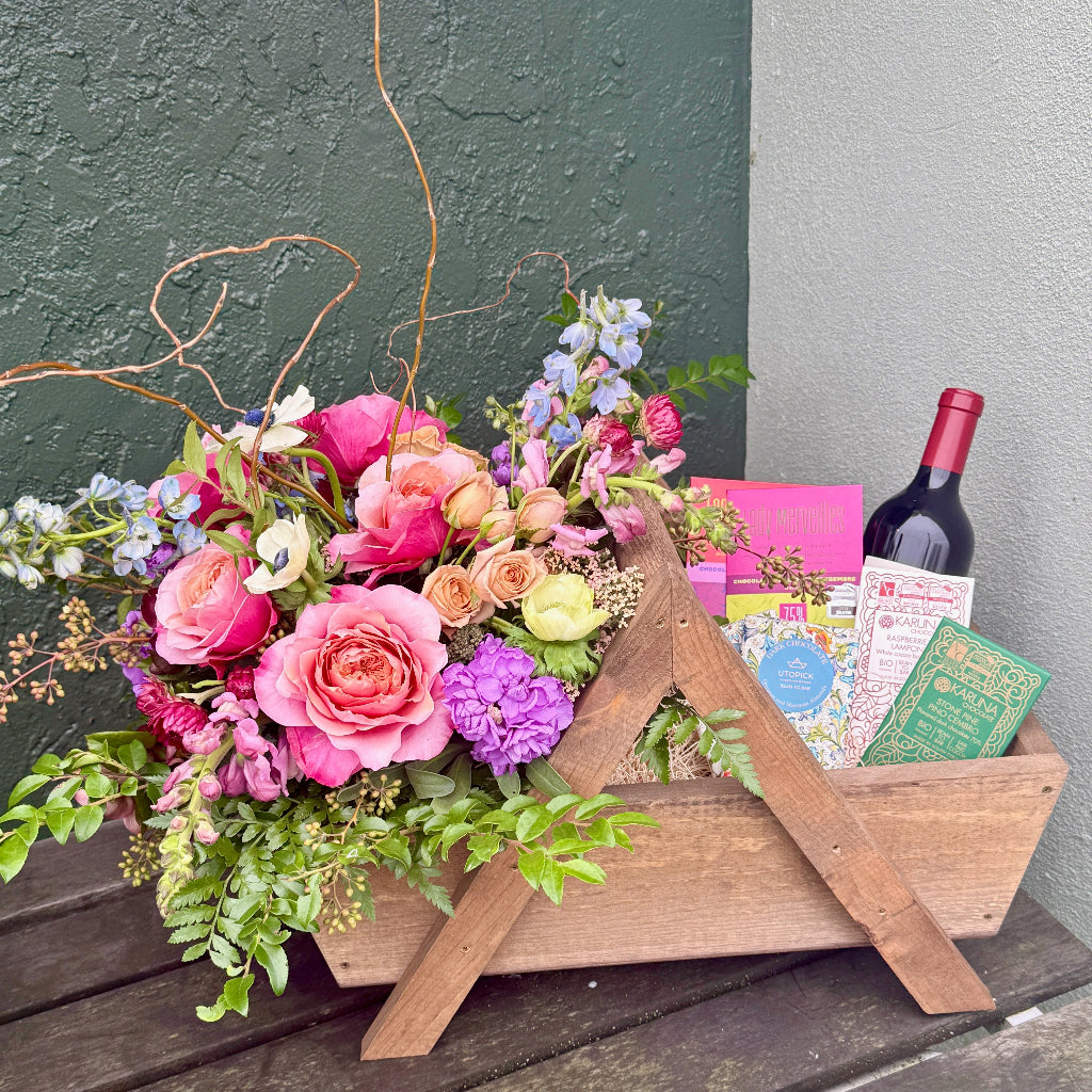 Sample some of the world's finest bean to bar chocolates from around the world with this luxurious gift basket featuring bars of chocolate and a bottle of Mark Ryan Winery wine. Basket includes: